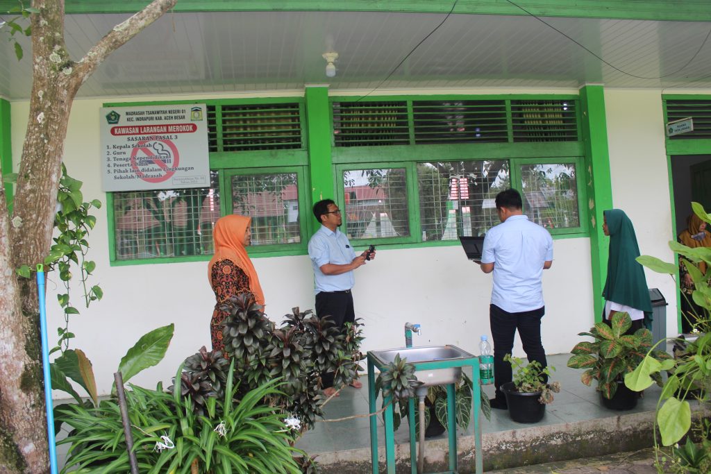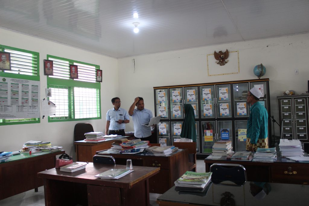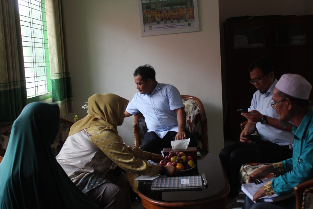 Indrapuri,- Kepala MTsN 1 Aceh Besar menerima Tamu untuk mengukur Kesesuaian BMN dengan SBSK dibawah Kementerian Agama RI.