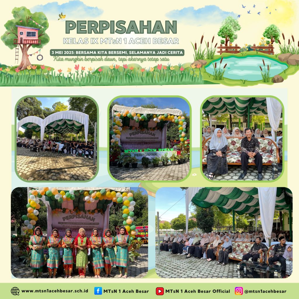 Pada hari Sabtu, 3 Mei 2025, MTsN 1 Aceh Besar menggelar acara perpisahan untuk siswa kelas IX dengan tema “Bersama Kita Bersemi, Selamanya Jadi Cerita”. Acara yang berlangsung dari pukul 08.30 hingga 12.00 WIB ini menjadi momen yang penuh makna, dihadiri oleh para siswa, guru, dan staf yang merayakan perjalanan panjang penuh kenangan bersama.