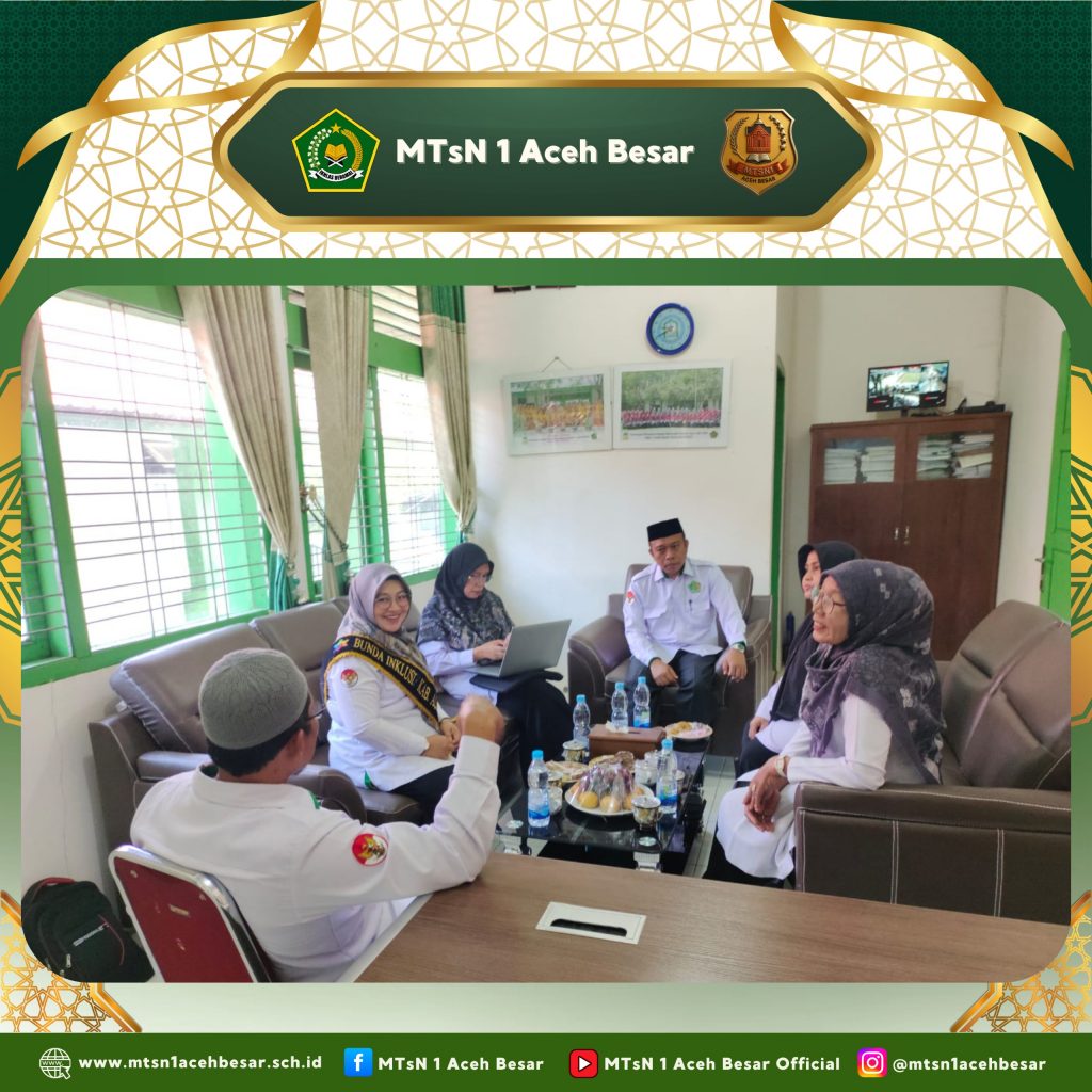Kegiatan berlangsung di ruang kepala madrasah dan disambut hangat oleh Kepala MTsN 1 Aceh Besar, Aizuddin, S.Pd.I. Turut hadir mendampingi, Ketua Pokjawas Aceh Besar, Rosyidah Lubis, S.Ag., M.A., Pengawas MTs, Darwati, S. Ag, Pengawas MI, Khairuddin, S.Pd.I., serta Kepala Tata Usaha MTsN 1 Aceh Besar, Indriani, S.Pd.