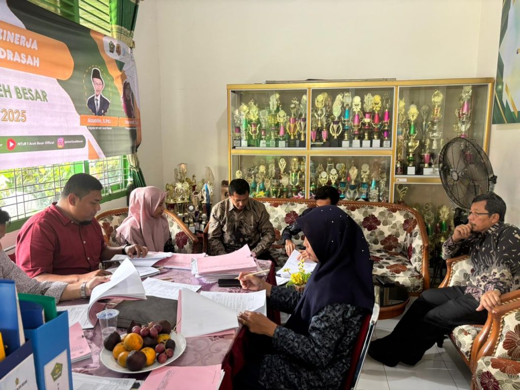 Kegiatan Monev tersebut didampingi langsung oleh Kepala Madrasah MTsN 1 Aceh Besar, Aizuddin, S.Pd.I, Wakil Kepala Bidang Sarana dan Prasarana Dra. Marnaili, Kepala Tata Usaha Indriani, S.Pd.I beserta staf, serta Bendahara Anggaran Nuzulidar, S.Pd., M.Pd. Kehadiran unsur pimpinan dan pengelola keuangan madrasah ini menunjukkan komitmen bersama dalam memastikan pengelolaan anggaran berjalan sesuai ketentuan dan prinsip akuntabilitas.